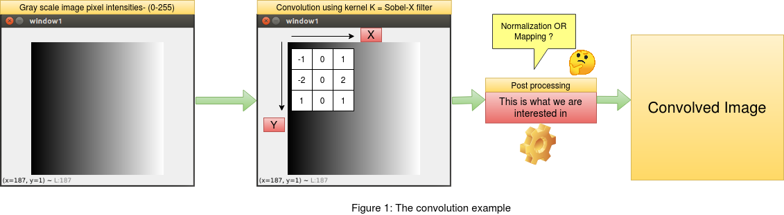 This post aims at understanding the conservation of information in a given number set in the range [min,max] after a certain mathematical operation has been performed on the corresponding set. We will consider an example of convolution on a gray scale image with pixel intensity range [0,255]. Suppose we perform a convolution using a kernel "K" on the image , the output of the convolution will have random values. In order to make sense of the convolved output , we need to some how relate these values to the original image. This is the step that we will explore in this post. At the end of this post we will understand how and why we apply normalization to conserve information and also be able to distinguish between mapping and normalization , as most of us have a misconception between the both. Click here to follow this article with the code.