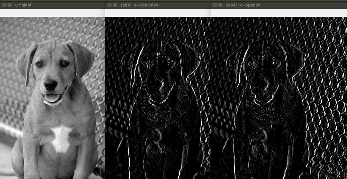 image with our sobel filters. This will be useful to compare the outputs between the readily available opencv library for convolution and our